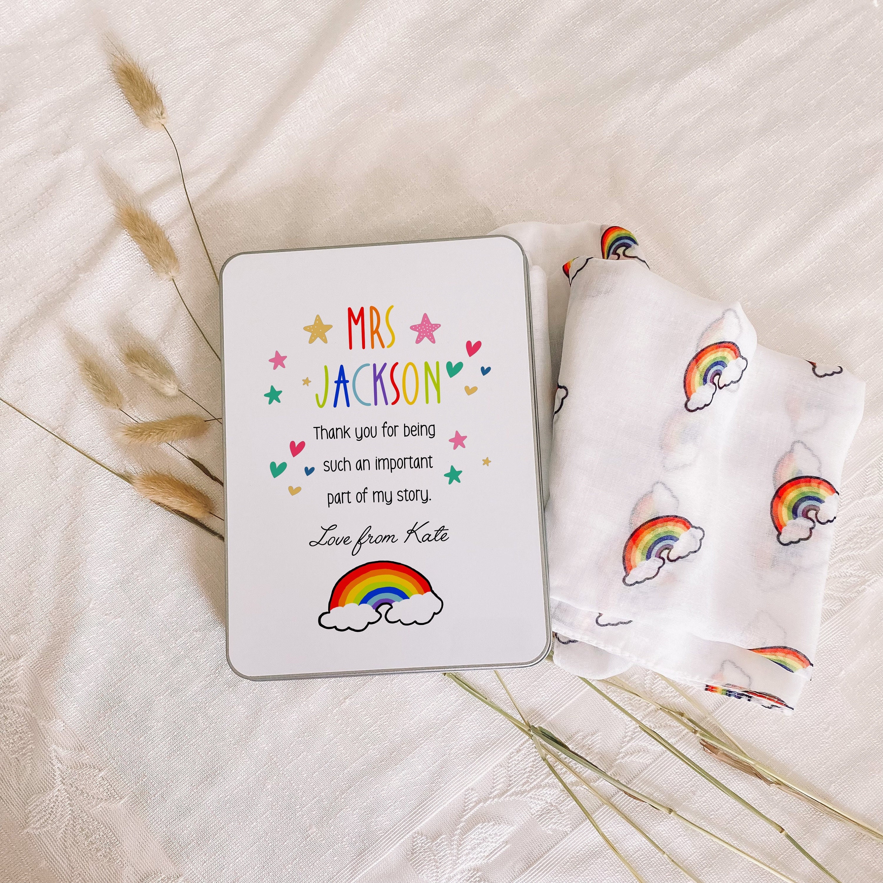 Rainbow Cotton Scarf In A Personalised Metal Gift Box Gift Etsy